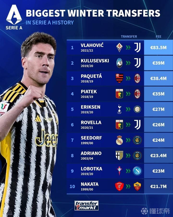 综上所述,意甲联赛冬季转会窗口上这10笔最贵的转会交易,不仅令人瞩目,更展现了欧洲足坛豪门俱乐部的雄心壮志。从弗拉霍维奇8350万欧元的断层领先,到中田英寿等老牌球星的身影,每一个故事背后都承载着球迷们的期待与梦想。未来,意甲联赛将继续成为转会市场上的风云之地,吸引着全世界的关注和目光。